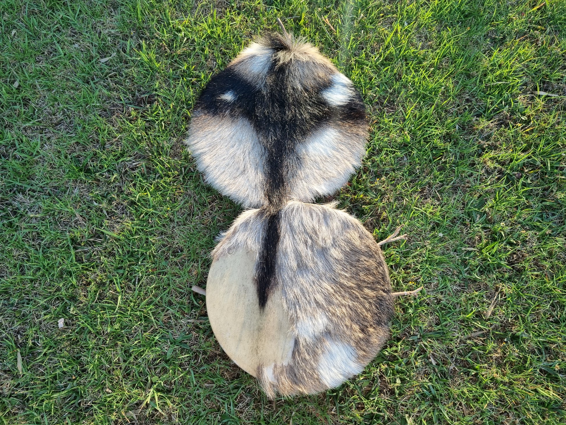 Made from the same piece of goat hide, one source expressed in two different forms.